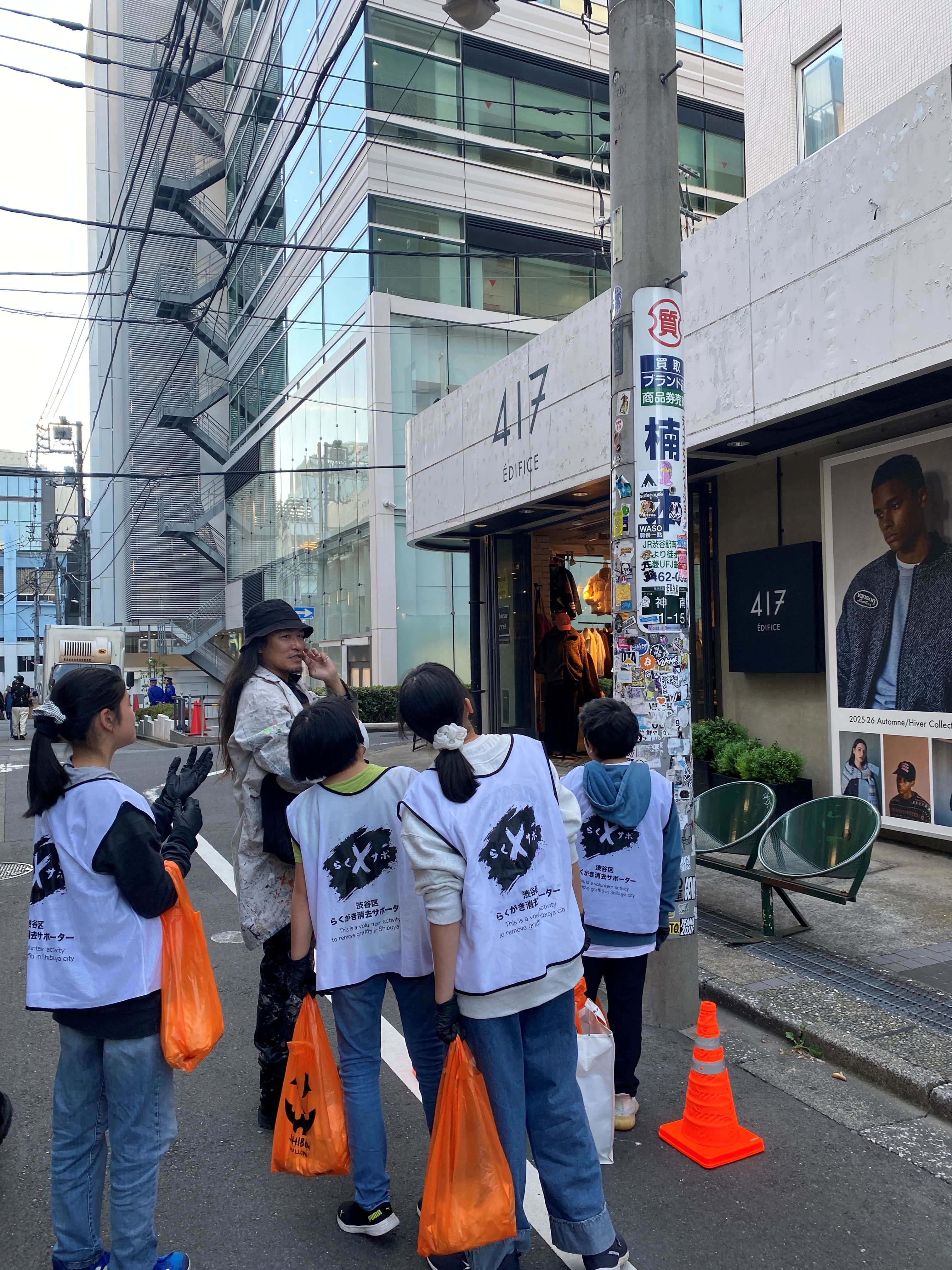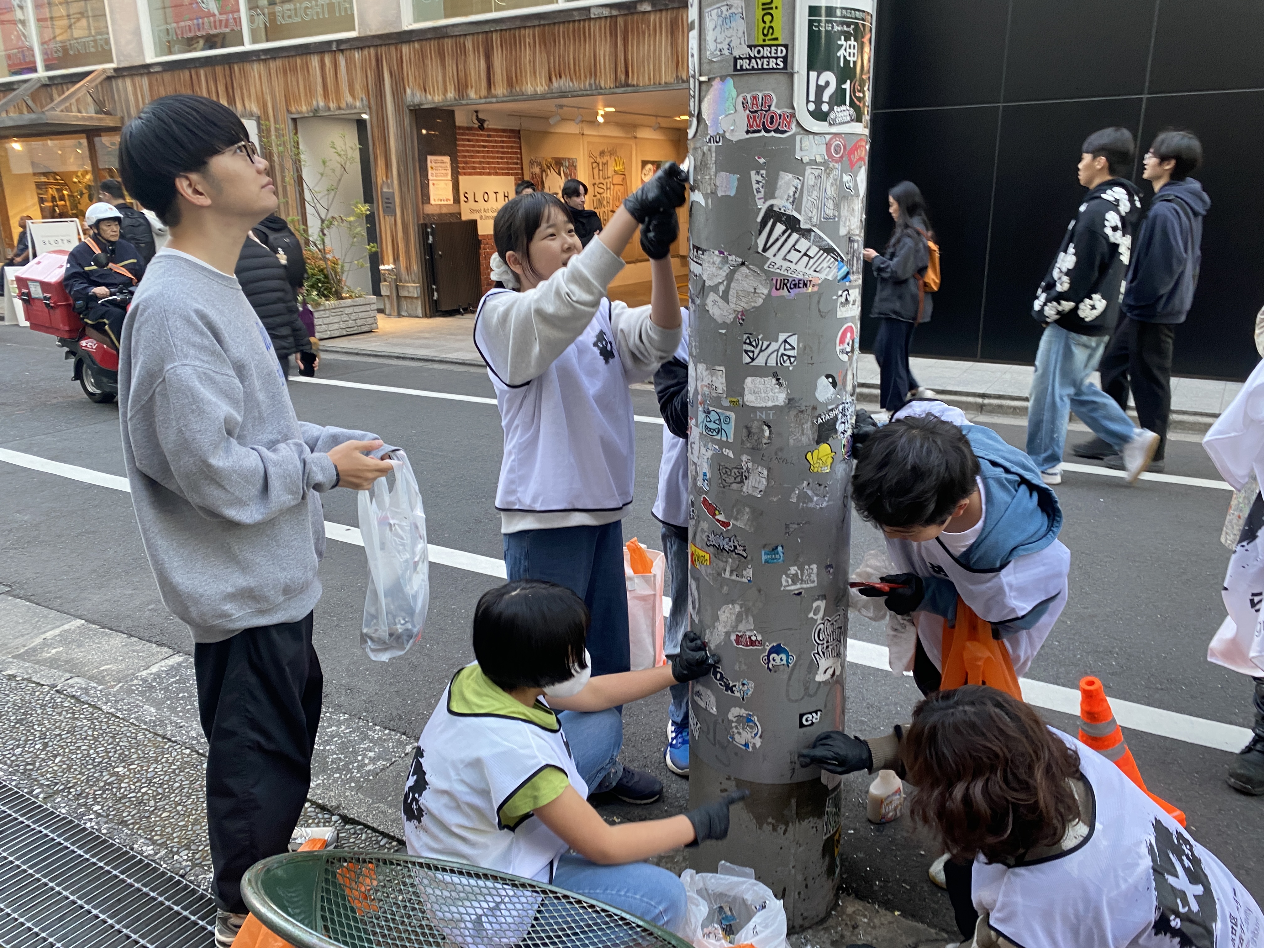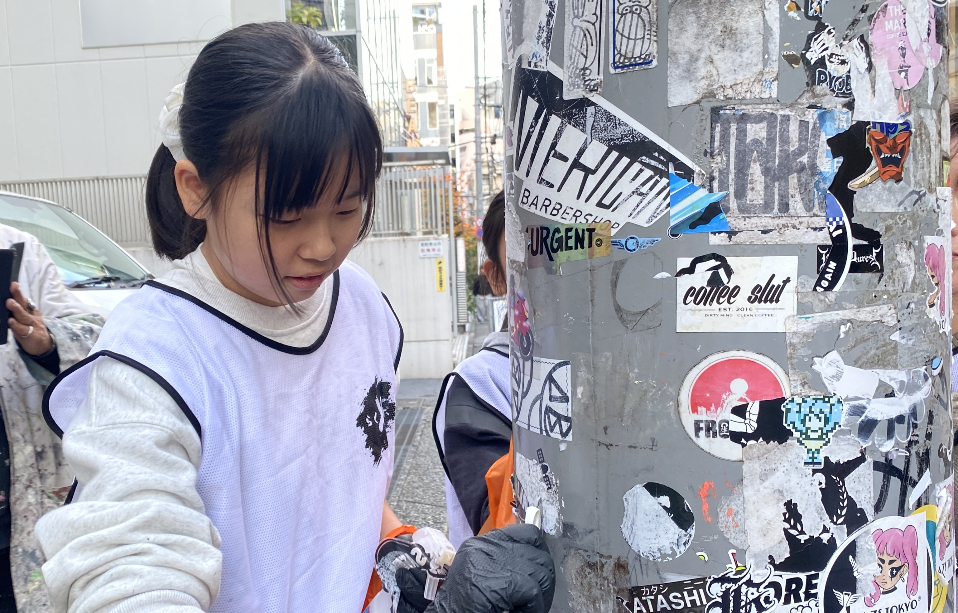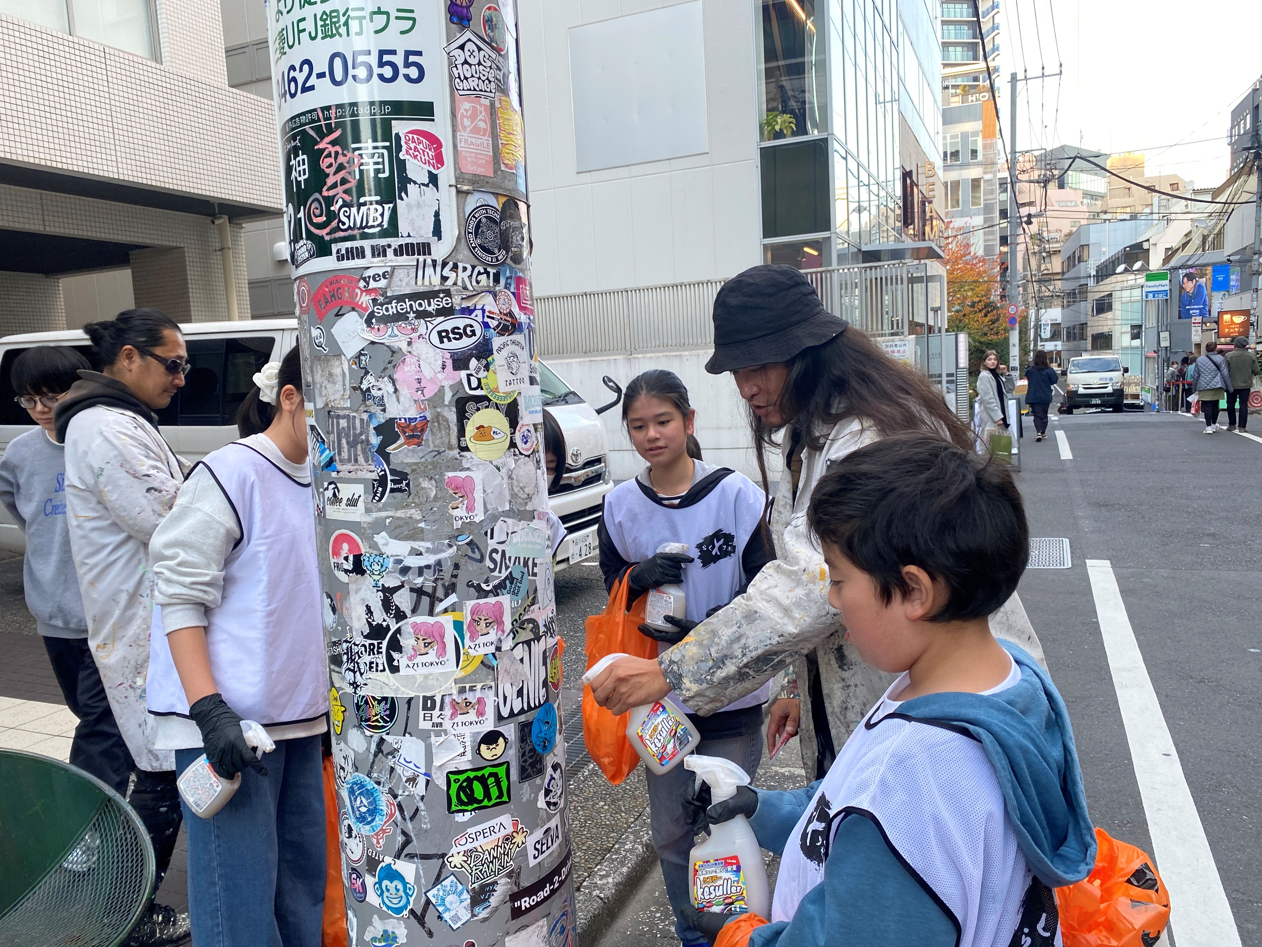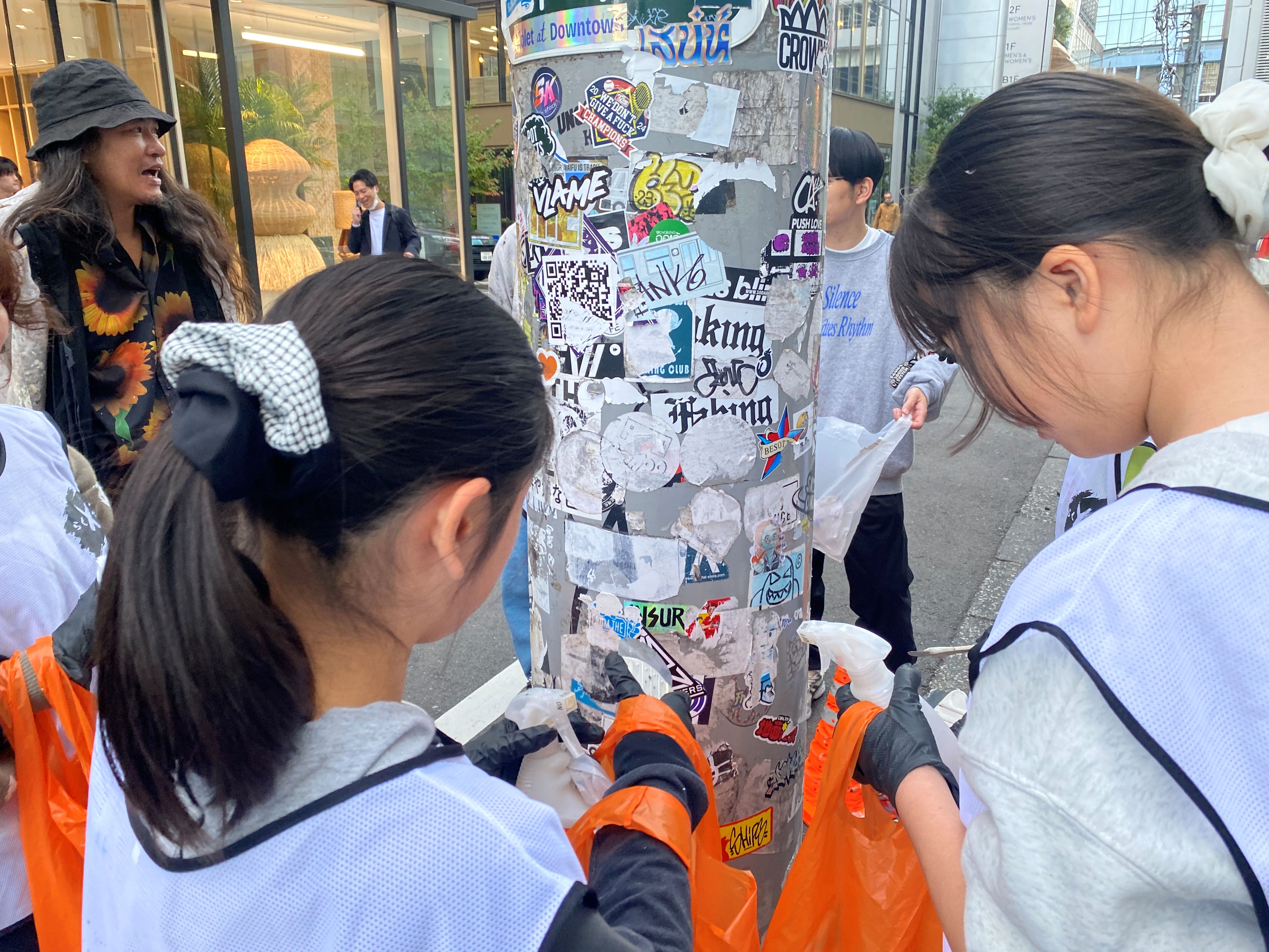 さて、振り返りの後は、お待ちかねの落書き消し&シール剥がし体験です。