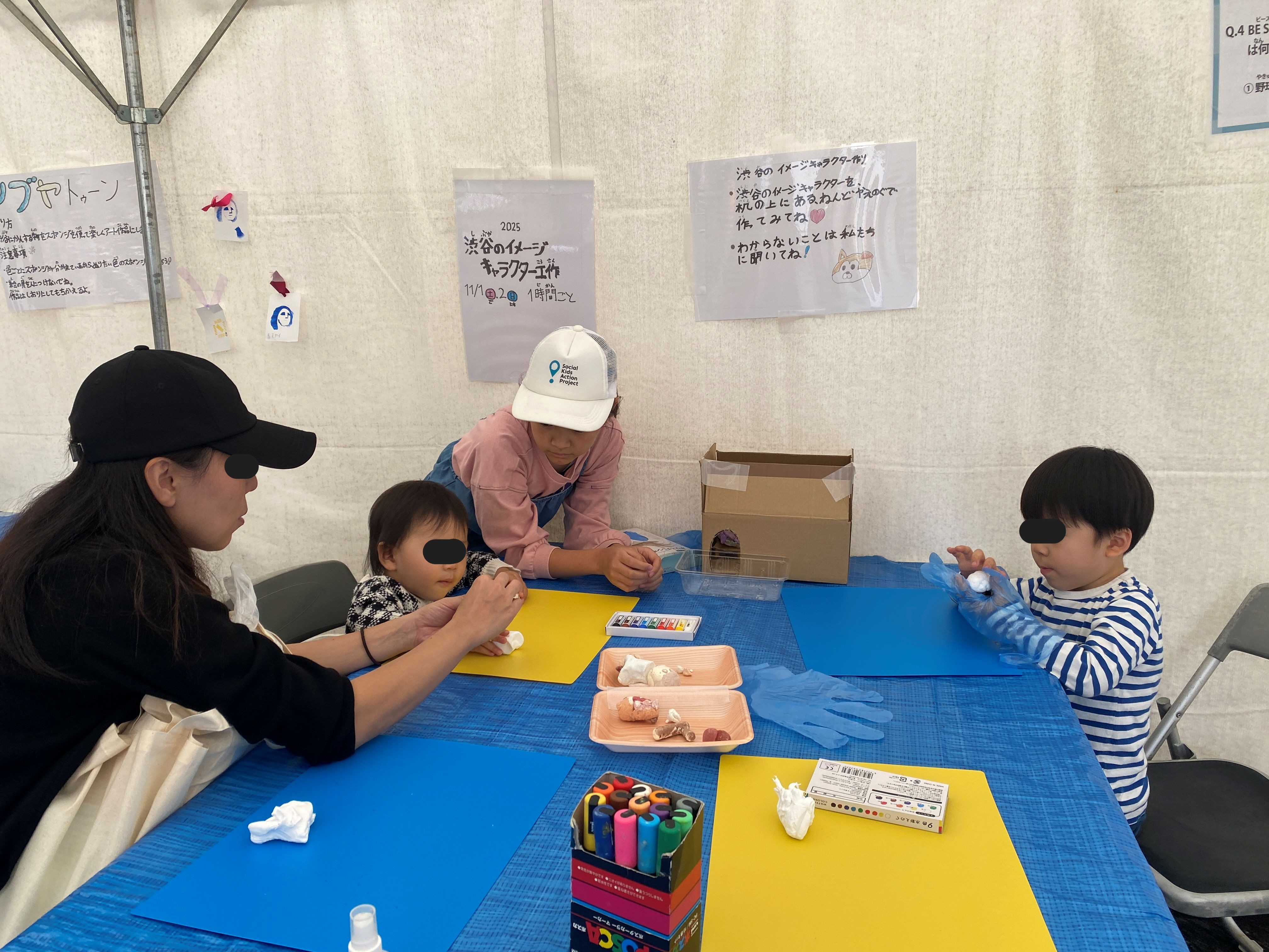 シブヤテレビジョンのスタッフをリサイクルおもちゃでデコったりして楽しんでいました。