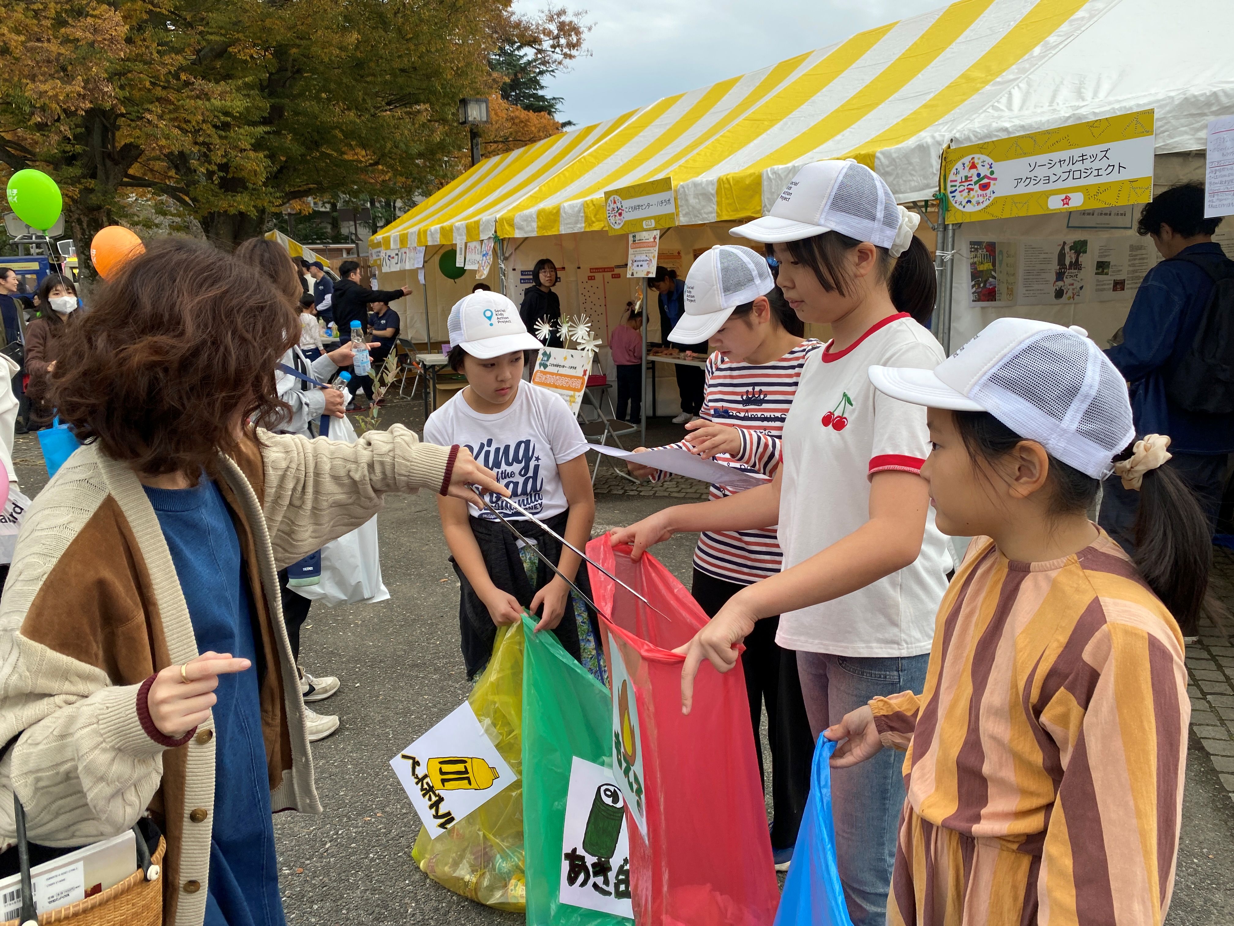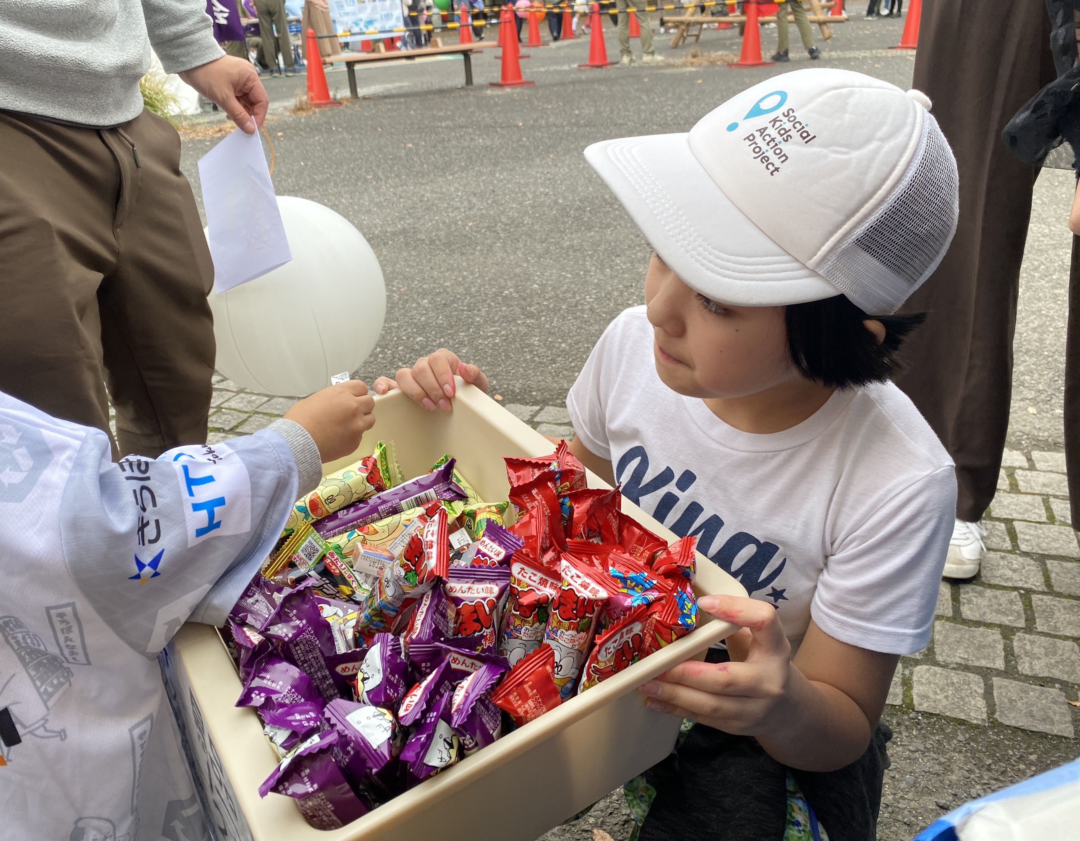 テント内をきれいに片づけ、余ったお菓子や景品を山分けして、