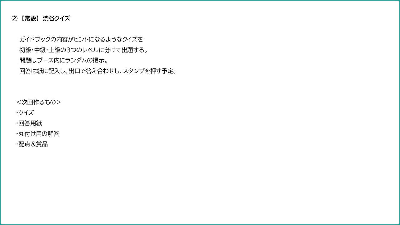- クイズの内容と回答用紙について