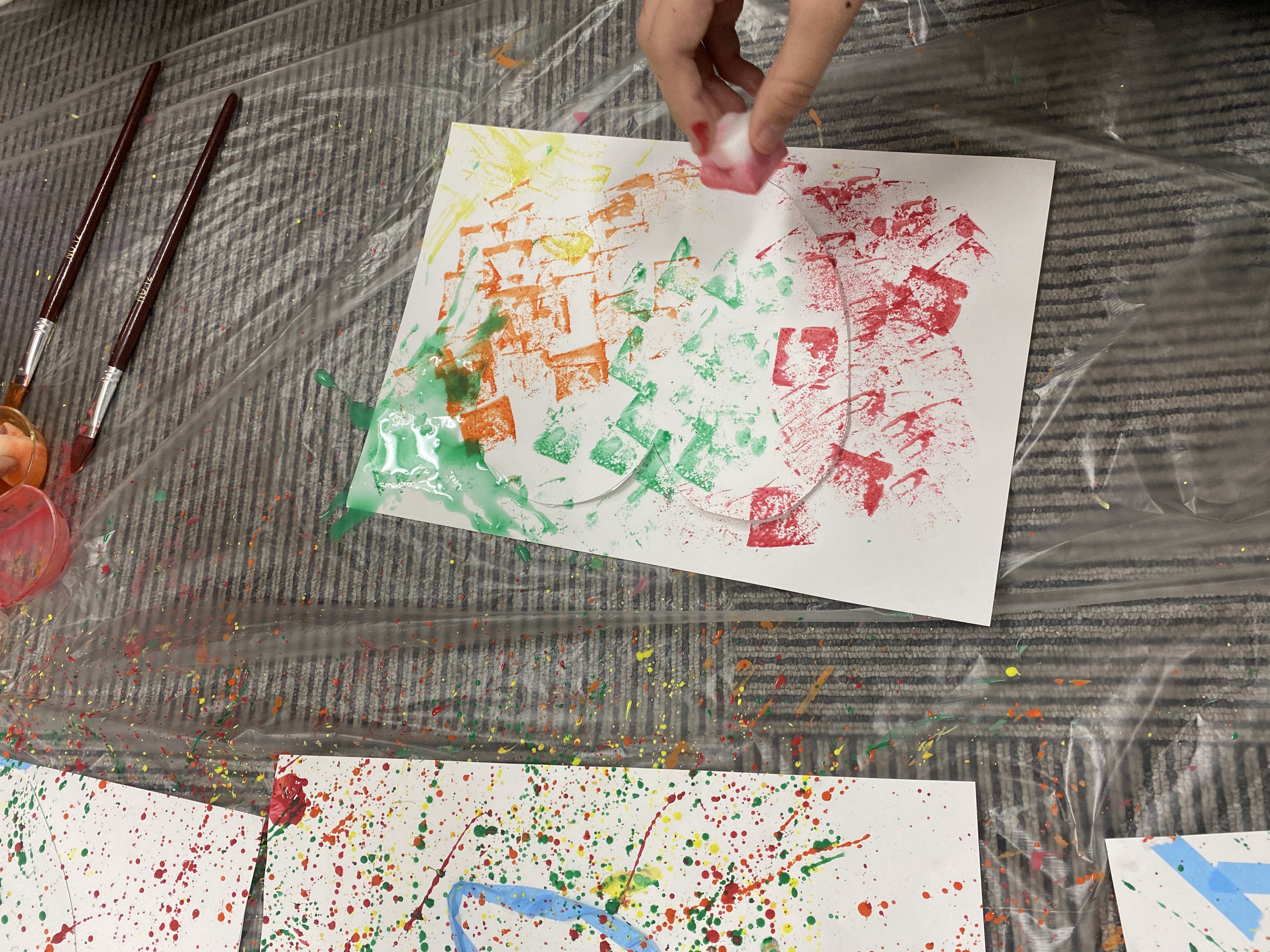 「筆で飛ばすよりも、スポンジの方がはっきり分かっていいかも」