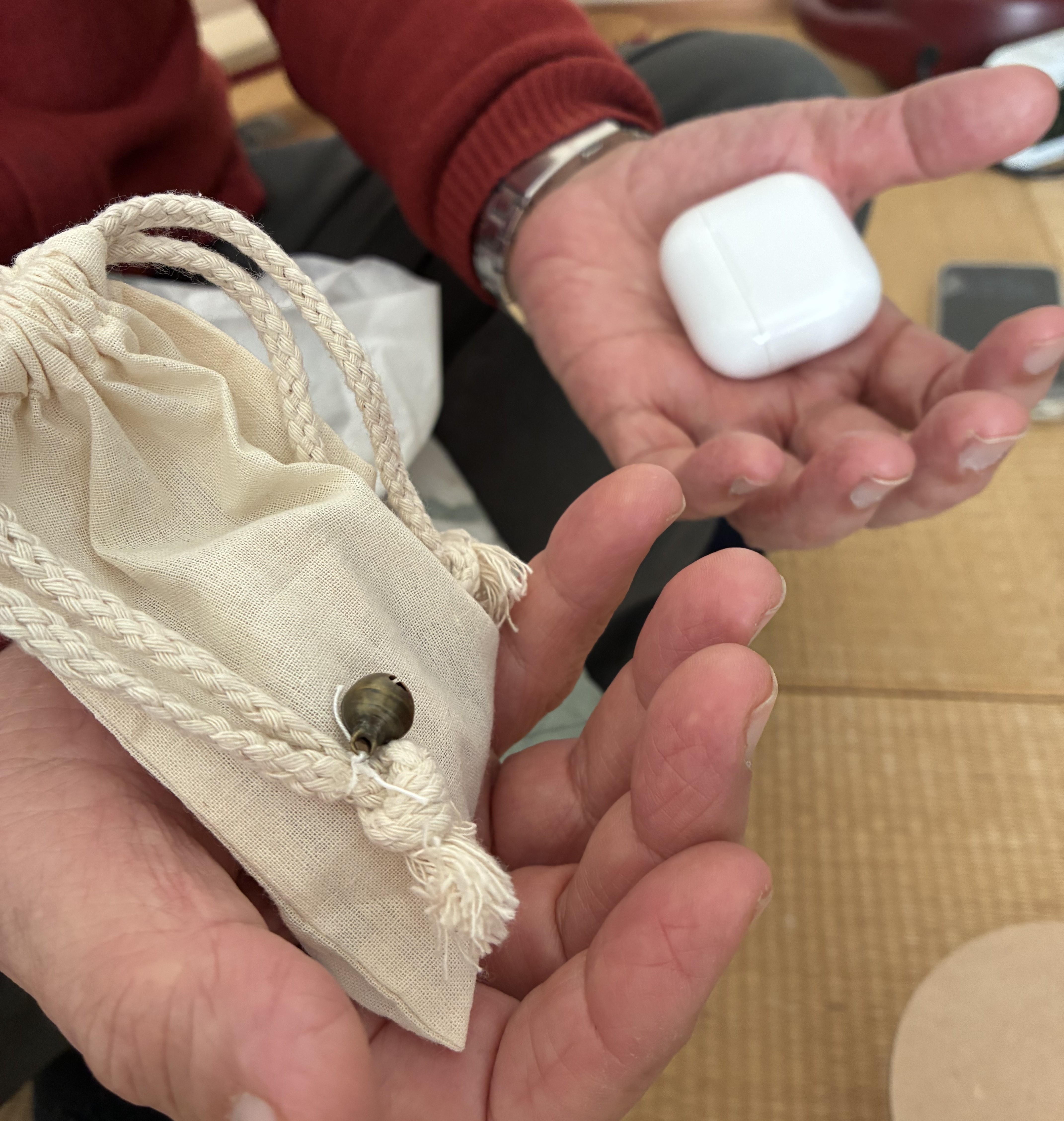布袋に鈴がついていたり、