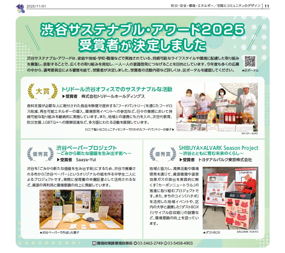の優秀賞受賞について渋谷区ニュース令和7年11月1日号で紹介されました。